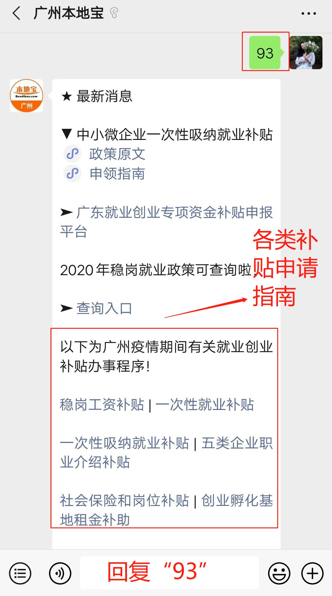 温馨提示:微信搜索关注【广州本地宝】(ID:bdbguangzhou)公众号,回复【93】,即可获得一次性吸纳就业补贴、五类企业职业介绍补贴、社会保险和岗位补贴等相关就业补贴信息,回复【95】,即可查询各类就业创业补贴、高温补贴、读书补贴等申请指南,方便您的日常生活办事。