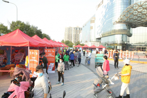 10月7日,鸿坤广场外,爱侬养老、正点家政、金月时代等北京市知名家政企业组成服务方阵进行服务展示,家政服务人员工装整齐,服务内容介绍专业,来往购物消遣的居民纷纷驻足于此,或观摩了解,或咨询服务,服务人员耐心解答,获得了商圈居民的广大好评。