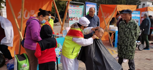 10月8日,香海园小区内,家政服务进社区活动进展的有声有色,老年人们排队免费理发、免费测量血压,还有的居民在展位仔细倾听家政服务人员讲解家庭保洁小窍门。记者在现场看到,活动不仅提供免费测量血糖、血压、理发服务,参展各企业也现场发放代金券、优惠券等,可以起到宣传带动家政服务消费的作用。