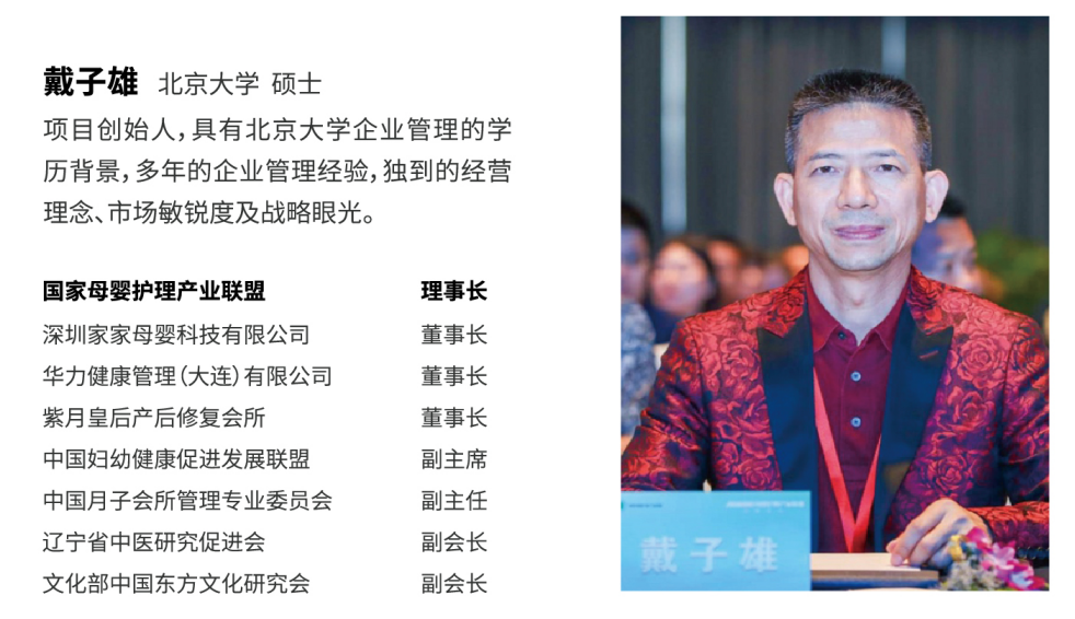 因此,为了从源头上给月嫂、育婴师、催乳师等母婴服务人员一个规范、专业和标准化的职业素养,戴子雄要结合家家母婴的产业结构创立家家母婴学院,并整合资源主持主编和发行了全国首套母婴服务行业标杆的有声教材《母婴护理师》、《育婴师》、《乳房保健师》,制定严格的月嫂分级制度,推出了获得行业广泛认可的星级母婴标准。全面推动母婴服务行业的标准化、职业化、专业化、国际化、品牌化发展。