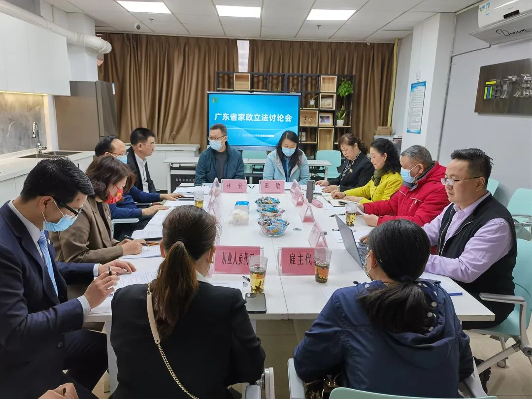 2022年2月18日,省商务厅召开《广东省家政服务条例》立法座谈会,广东省商务厅服贸处副处长田敏、科长林宏,广东省家庭服务业协会常务副会长兼秘书长李丽蓉、副秘书长陈健,惠州家庭服务业协会常务副会长、惠州拓普家政服务有限公司董事长欧阳骏良,广东省居家养老服务协会副会长、广州谷丰健康产业投资有限公司副总裁钟仕雄,广州千样好家庭服务有限公司董事长赖秋月,广州广府人家信息科技有限公司总经理冯恩荣,广州市南沙区老年教育协会会长李宝华,清远职业技术学院旅游家政与艺术学院教授、项目负责人王飞生,律师代表林塭丰、雇主代表孙清清、从业人员代表劳月红出席了会议。