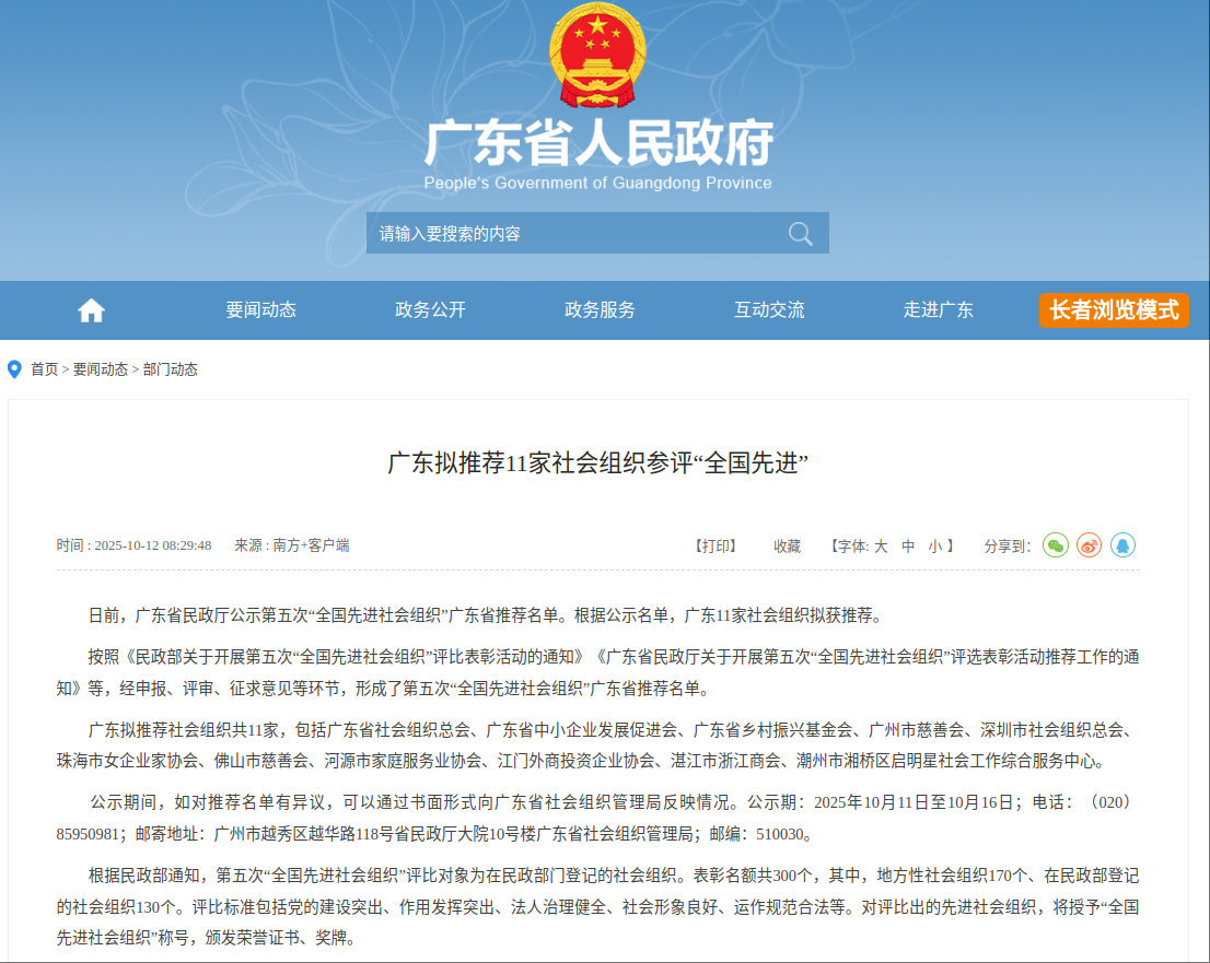 ● 河源市家庭服务业协会被列入第五次“全国先进社会组织”广东省推荐名单